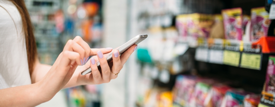 Klient uruchamia aplikację na swoim telefonie i przykładą ją do produktu
